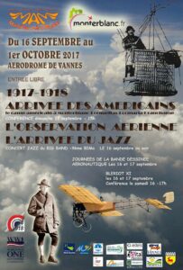 Ce projet porté l’association Morbihan Aéro Musée a également reçu la labellisation de la » WWI Centennial Commission » : la Commission américaine du Centenaire. Intitulée » 1917, l’arrivée des américains, l’observation aérienne, l’arrivée du jazz « , la manifestation s’est déroulée du 15 septembre et le 1er octobre dernier sur l’aérodrome Vannes Golfe du Morbihan situé sur la commune de Monterblanc, Journées Européennes du Patrimoine comprises !